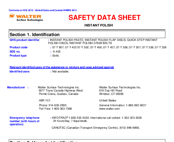 The Walter 07T907 Instant Polish™ Paste is a premium-grade chemical compound designed for the final stages of metal finishing. Engineered by Walter Surface Technologies, this paste is formulated to bring stainless steel, aluminum, and other non-ferrous metals to a true mirror finish (Ra < 0.05 µm). Unlike generic buffing compounds that may rely on heavy fillers, Instant Polish™ utilizes a highly refined abrasive suspension that cuts and colors in a single action when used with the appropriate felt or cloth media. The 1200g tube is sized for industrial throughput, ensuring consistent supply for large-scale architectural or pharmaceutical fabrication projects.