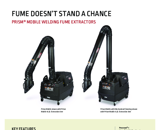 The Lincoln Electric Prism® Mobile Welding Fume Extractor (K1653-5) is a robust low-vacuum system designed to meet the rigorous demands of modern fabrication environments. Engineered for versatility and efficiency, this mobile unit provides a powerful solution for controlling welding fumes at the source. The K1653-5 is the base unit configuration, allowing facilities to customize their setup with the appropriate extraction arms (sold separately) to best suit their specific workspace layout and reach requirements.