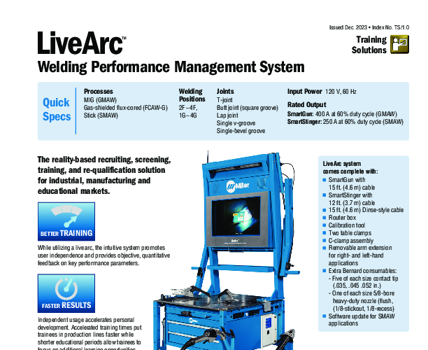 | Compatible System:Miller LiveArc Welding Performance Management System |