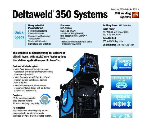 | Compatible Power Source:Deltaweld 350, Deltaweld 500 |