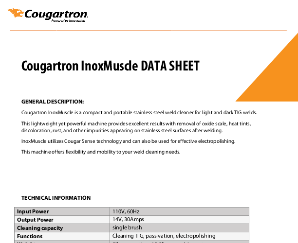 Ideal for welders and fabricators, the Cougartron Inox Muscle Machine Set enhances the quality of your work by ensuring that surfaces are free from contaminants and residues. Its versatility allows for use in a variety of applications, making it a valuable addition to any workshop.